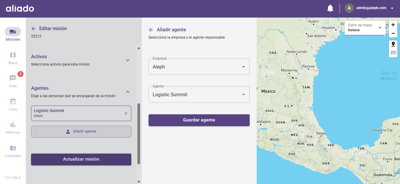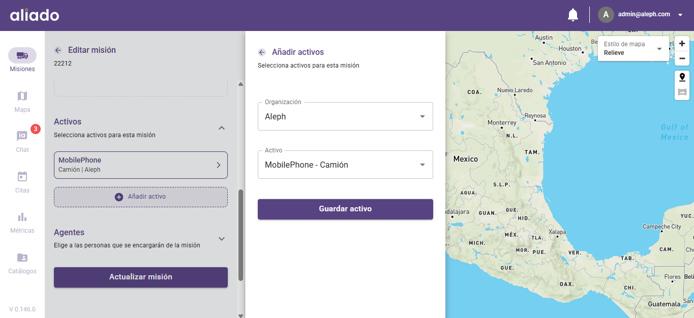 De la misma forma puede agregar agentes, activos o eliminar una misión que se haya cargado