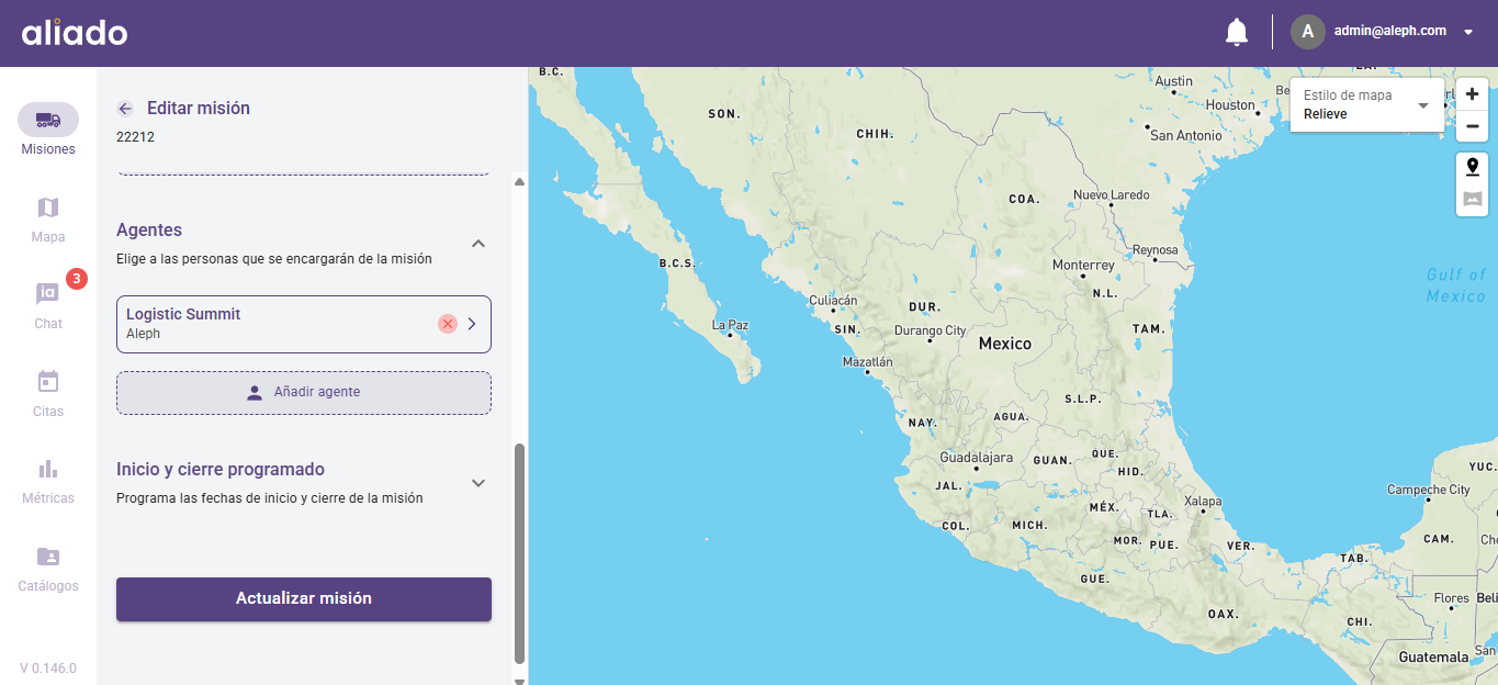 También podría interesarle: Crear Misión | Iniciar Misión | Cerrar Misión | Crear misión de Carga Masiva| Crear misión desde plantilla