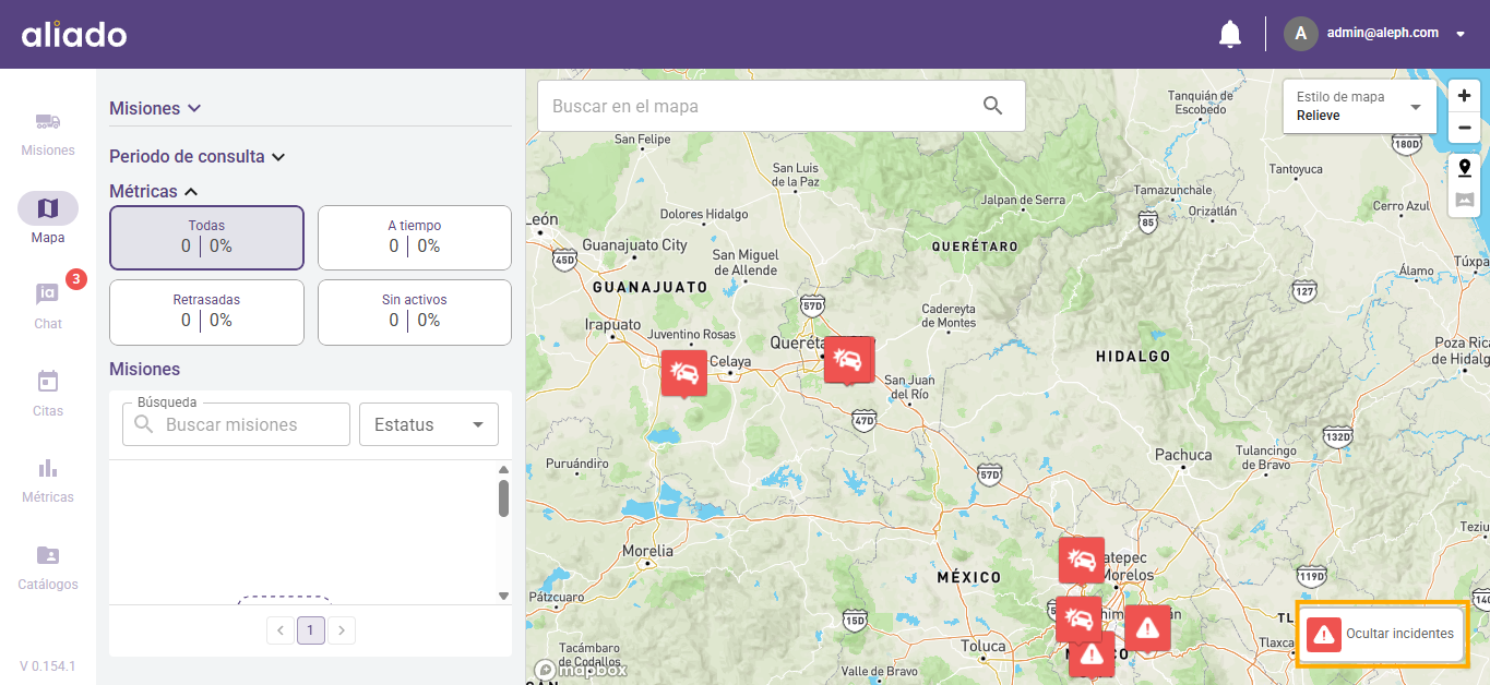 En la sección de mapa, del lado derecho, hasta abajo, podrá encontrar el botón de mostrar/ocultar incidentes, estos ayudan a ver si puede tener ciertos restrasos en su camino o si es posible evitarlos con otra ruta