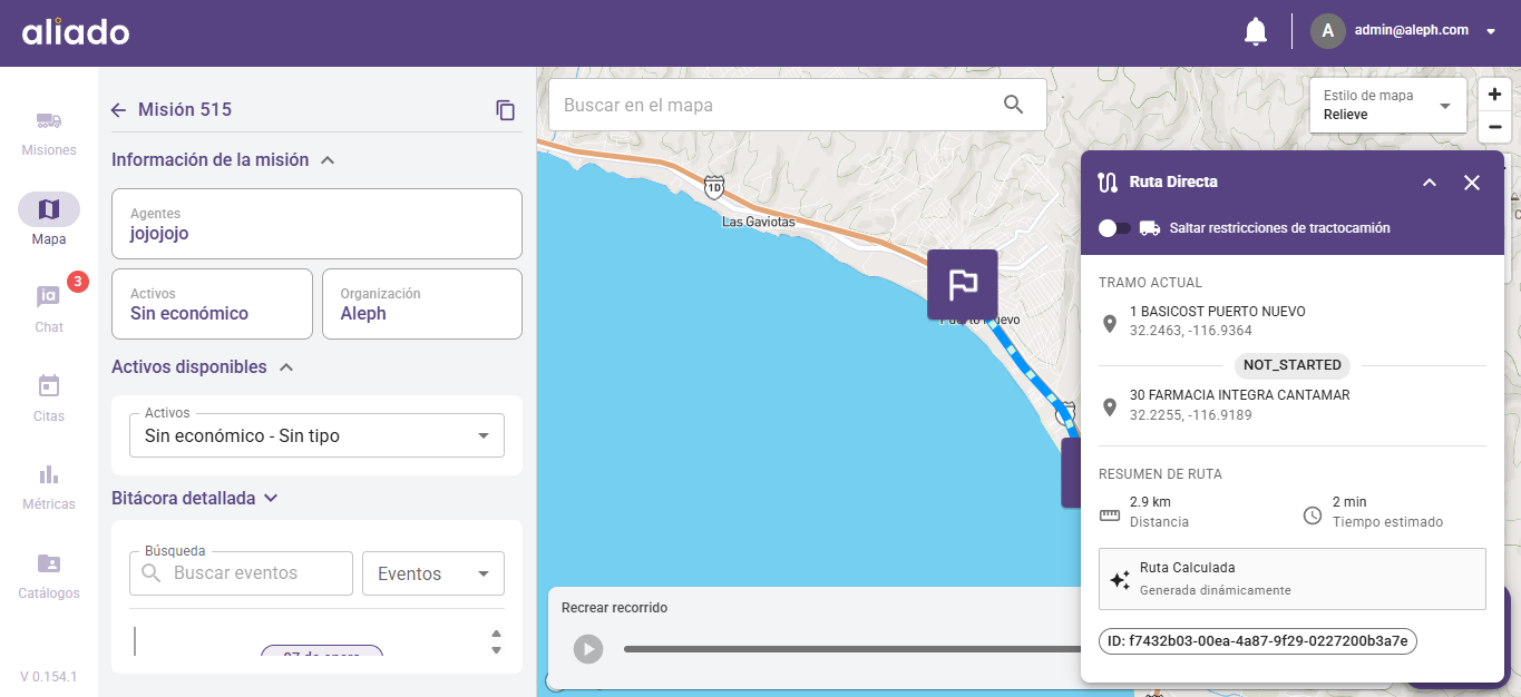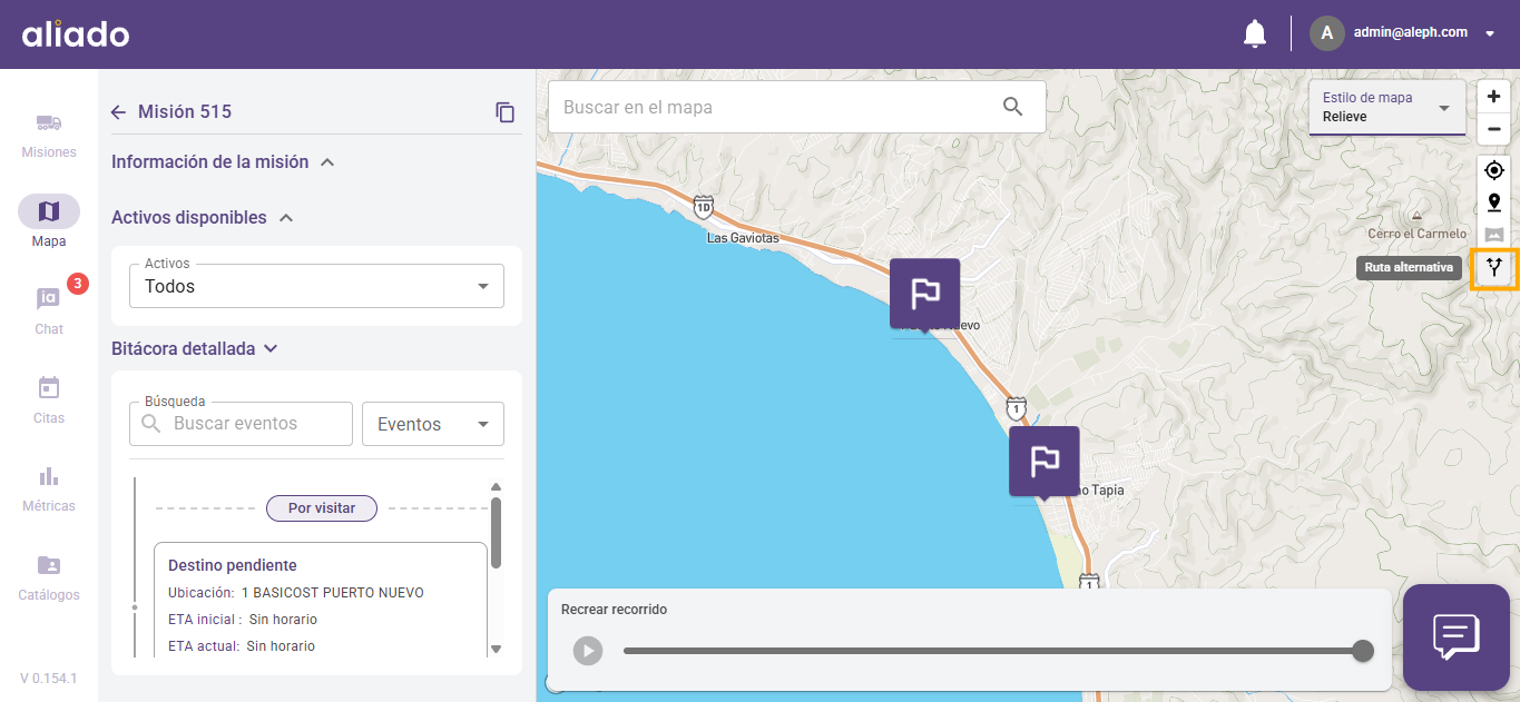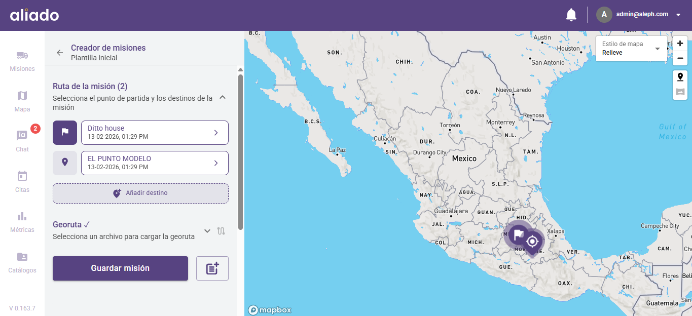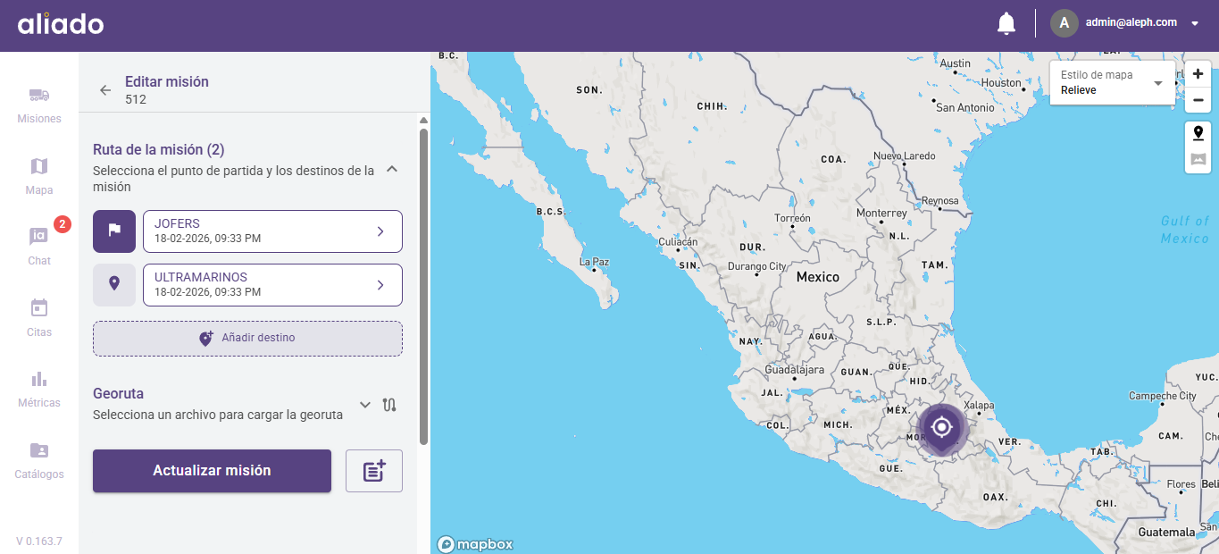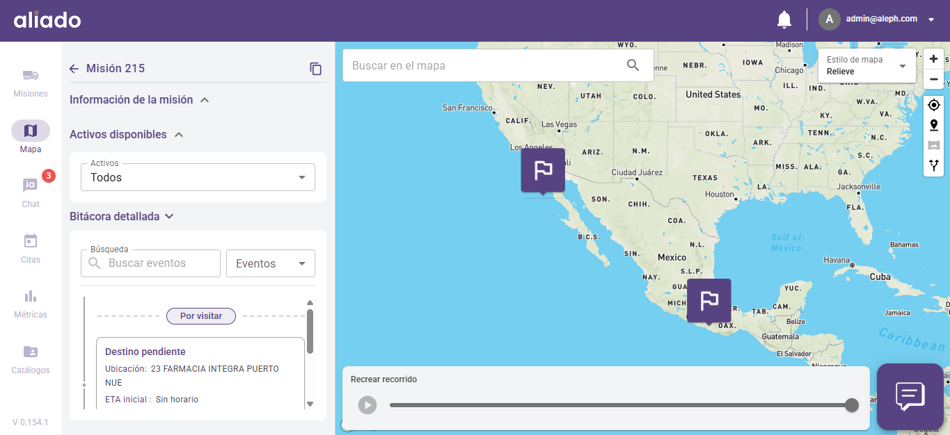 Podrá visualizar el recorrido de su misión o iniciar una conversación