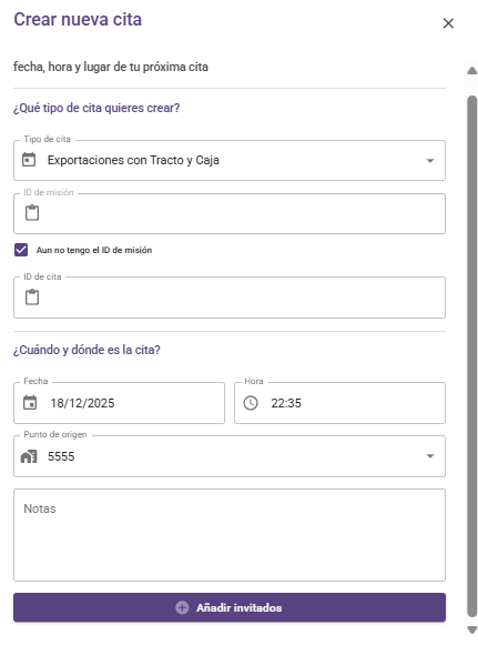Nota: Si desea crear una cita por carga masiva, haga clic aquí.