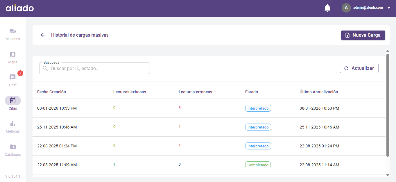 En el recuadro que aparece, seleccione la opción "Nueva carga masiva".