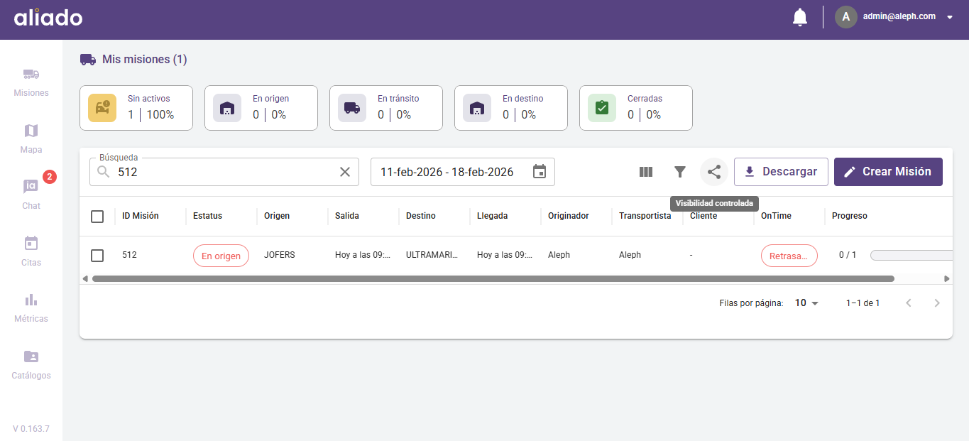 Podrá visualizar las misiones creadas en el apartado de misiones