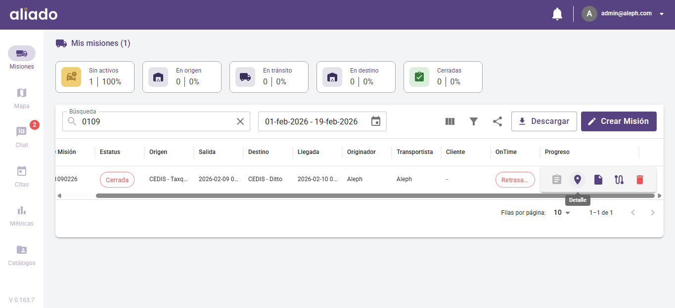 También podría interesarle: Iniciar Misión | Editar Misión | Cerrar Misión | Crear misión de carga Masiva| Crear misión desde plantilla