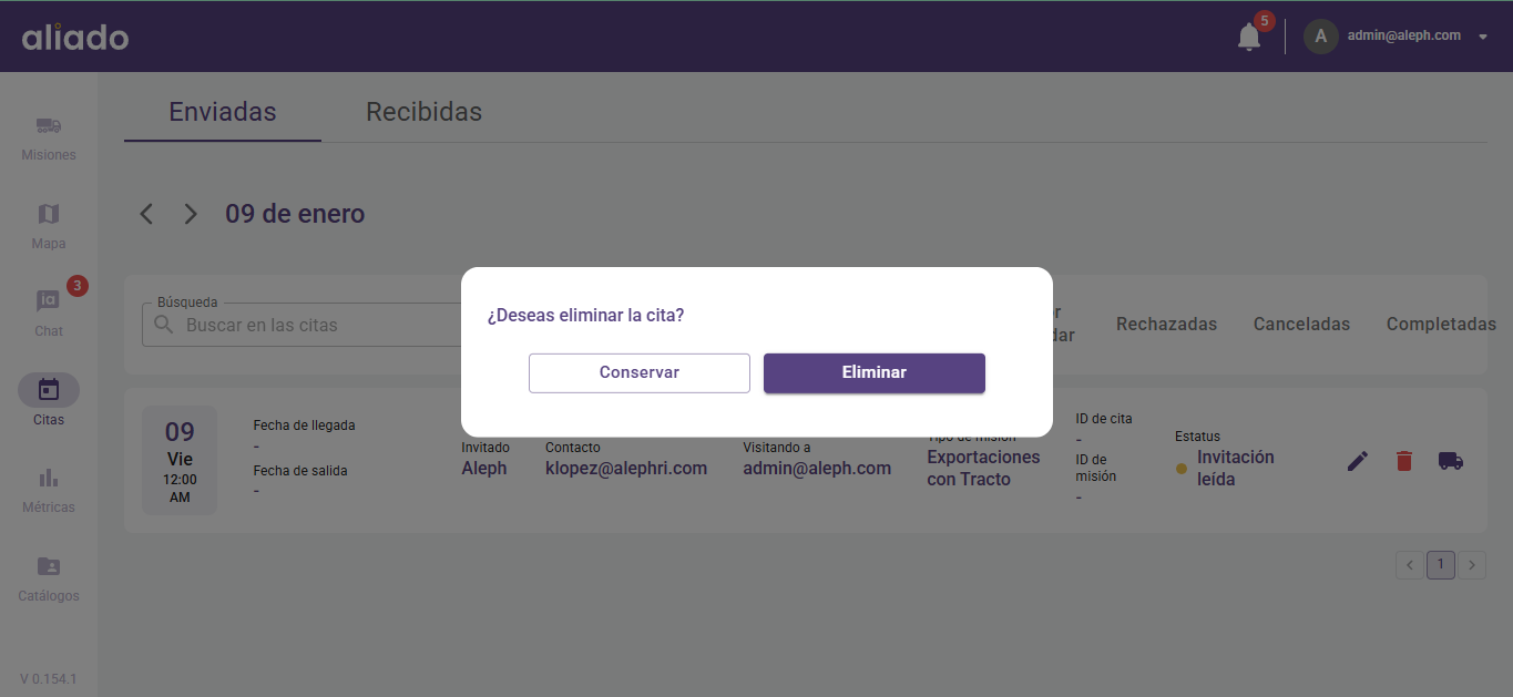 Le aparecerá un mensaje de confirmación, cuando este seguro de que sea la cita que quiere eliminar, tendrá que darle clic al botón de Eliminar