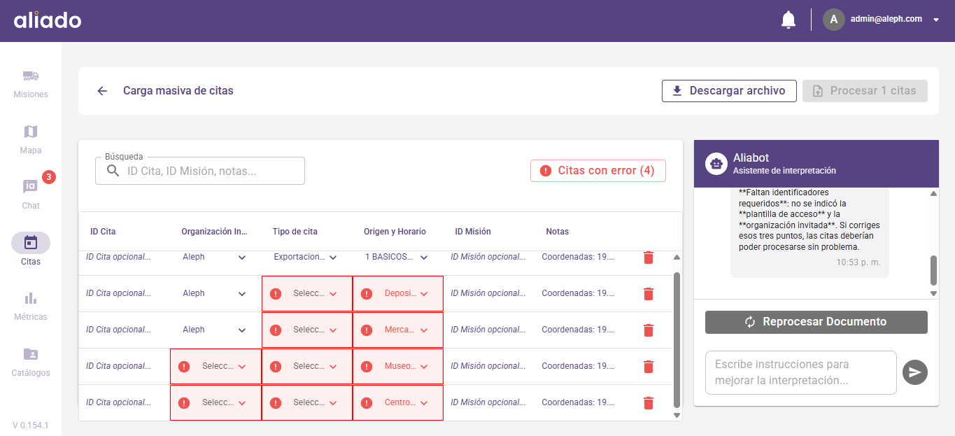 Una vez corregido los errores, seleccionará el botón procesar citas