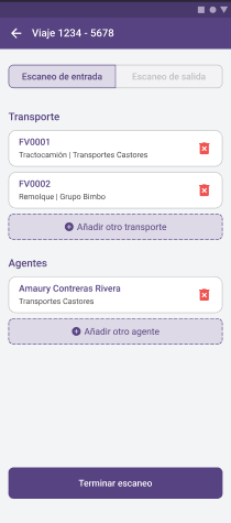 Una vez escaneado el transporte que se utilizó podrá agregar los agentes que estén a cargo de la misión